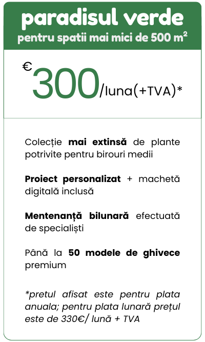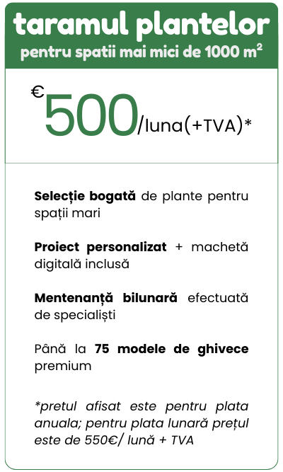 Plante premium, îngrijire profesională și servicii dedicate companiilor care vor un mediu de lucru modern și relaxant.